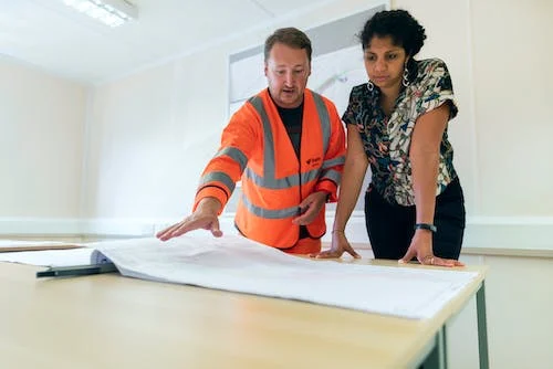 Free Engineers Looking at Blueprint Stock Photo